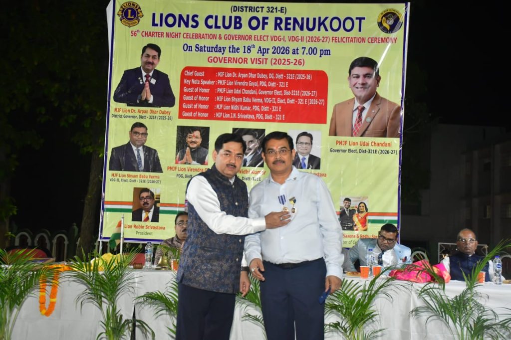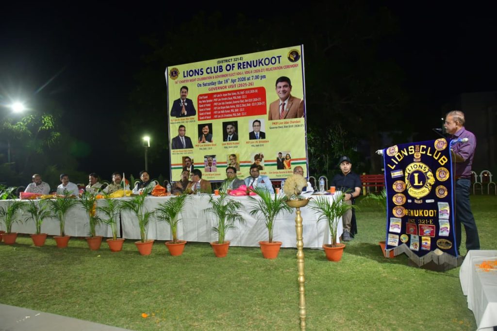 रेणुकूट (सोनभद्र) । लायंस क्लब रेणुकूट द्वारा अपना 56वां स्थापना दिवस अत्यंत उत्साह एवं भव्यता के साथ मनाया गया। इस अवसर पर डिस्ट्रिक्ट गवर्नर लायन अर्पण धर दुबे मुख्य अतिथि के रूप में उपस्थित रहे। उनके साथ गवर्नर इलेक्ट लायन उदय चांदनी, वाइस डिस्ट्रिक्ट गवर्नर-2 लायन श्याम बाबू वर्मा, साउथ के गौरव एवं पूर्व जिला गवर्नर लायन वीरेंद्र गोयल (क्लब के गार्जियन स्वरूप), पूर्व गवर्नर लायन निधि कुमार तथा पूर्व गवर्नर लायन जेएन श्रीवास्तव की गरिमामयी उपस्थिति रही।
