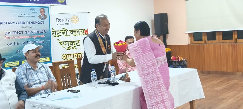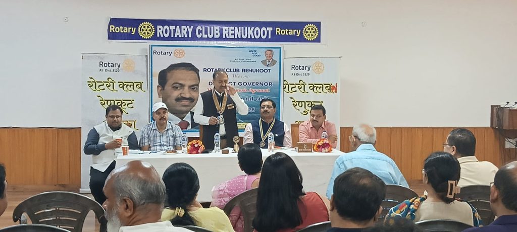 रेणुकूट (सोनभद्र) : रोटरी क्लब रेणुकूट द्वारा रोटरी डिस्ट्रिक्ट 3120 के डिस्ट्रिक्ट गवर्नर (DG) रो. डॉ. आशुतोष अग्रवाल की आधिकारिक क्लब विजिट (OCV) अत्यंत सफलतापूर्वक आयोजित की गई।