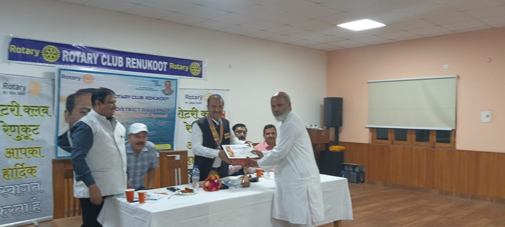 इस अवसर पर रेणुकूट के समाजसेवी श्री राजकुमार यादव को उनके सामाजिक योगदान के लिए डिस्ट्रिक्ट गवर्नर द्वारा प्रशस्ति पत्र प्रदान कर सम्मानित किया गया।
